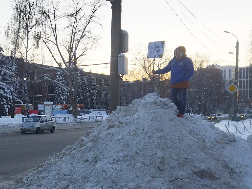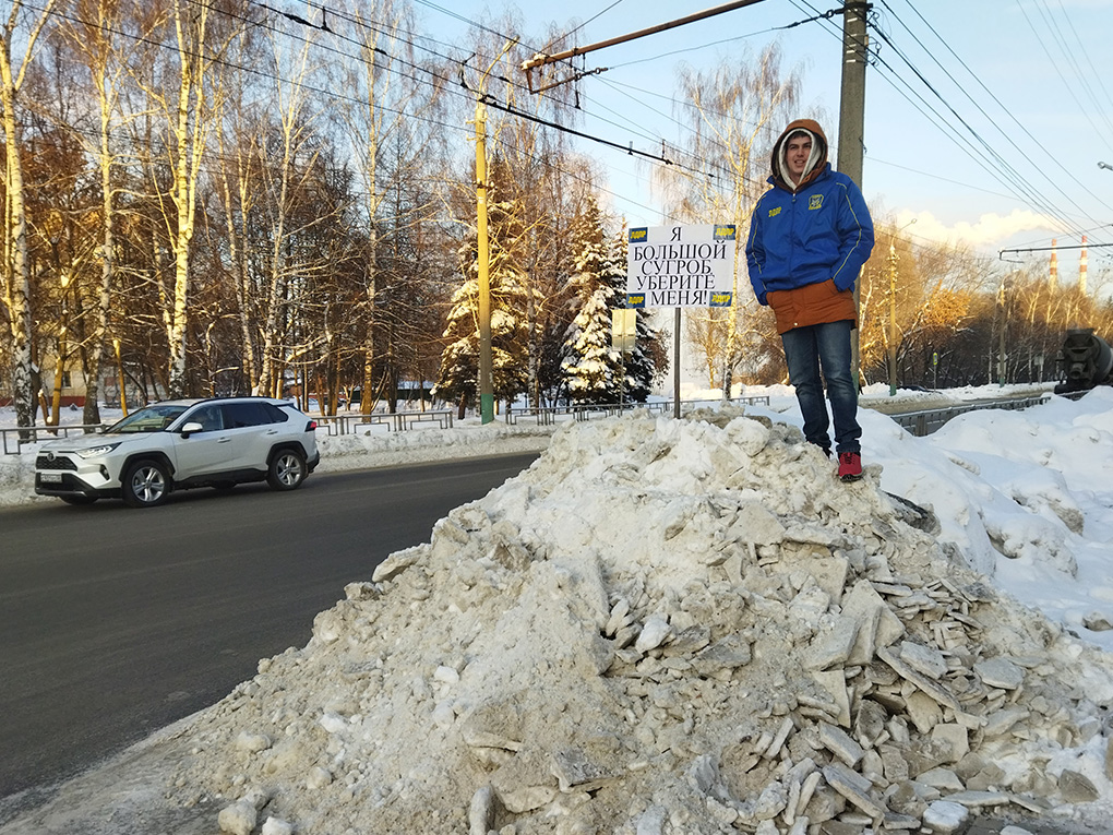 Активисты молодёжной организации Пензенского регионального отделения ЛДПР во главе с Тимуром Калушко решили напомнить коммунальщикам о необходимости вывоза навалов снега с городских дорог. С этой целью партийцы провели серию необычных пикетов с плакатами «Я большой сугроб. Уберите меня!».