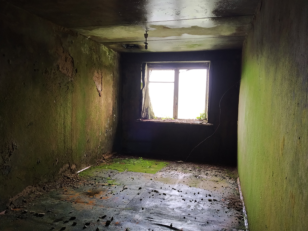 Из одиннадцати квартир заселены только пять. Жизнь в них больше похожа на ад: во всех комнатах стоят ёмкости, в которые с потолка льётся вода во время даже небольшого дождя. А в заброшенных квартирах стены настолько сырые, что там растёт мох, полы сгнили, в ванных комнатах плитках отваливается со стен. Их владельцы давно не следят за состоянием своих квадратных метров.