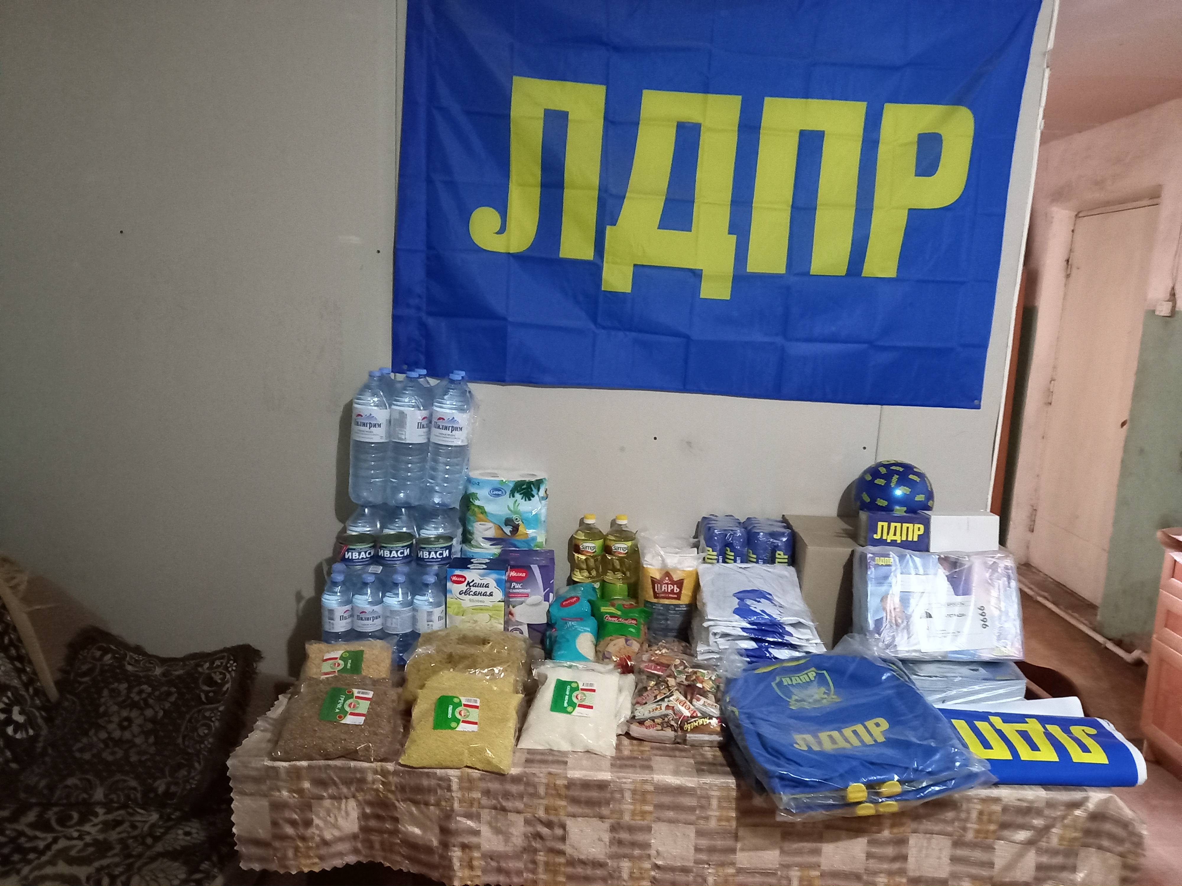 Партийцы закупили для беженцев самое необходимое: питьевую воду, макароны, крупы, сахар, чай и средства личной гигиены, а для детей — сладости, школьные рюкзаки, мячи, тетради и канцелярские принадлежности. Кроме того, активисты ЛДПР передали дезодоранты и футболки с партийной символикой.