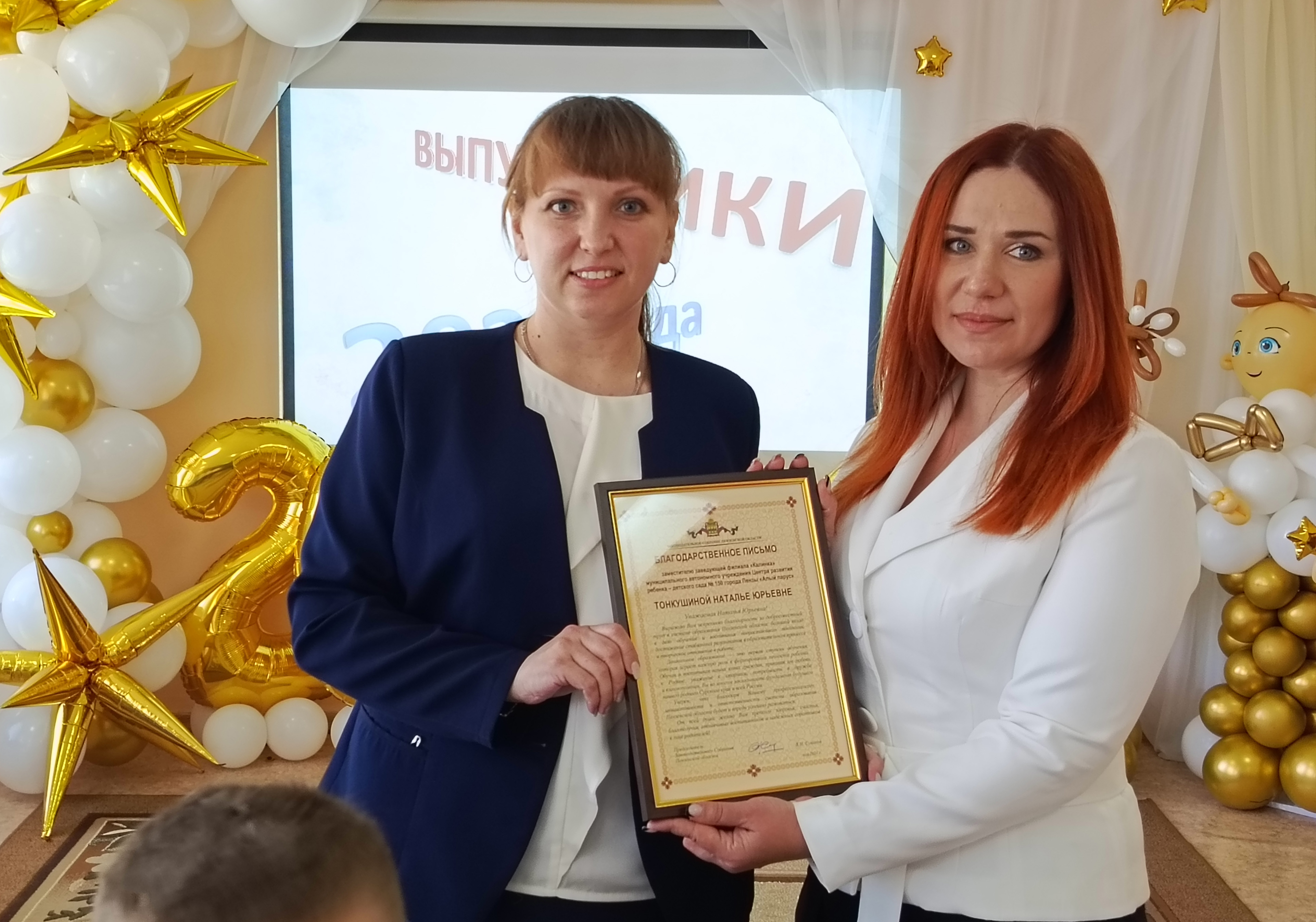 В завершение мероприятия Анна Михалищева в торжественной обстановке вручила благодарственное письмо заместителю заведующей филиала, а каждый выпускник получил сладкий подарок.