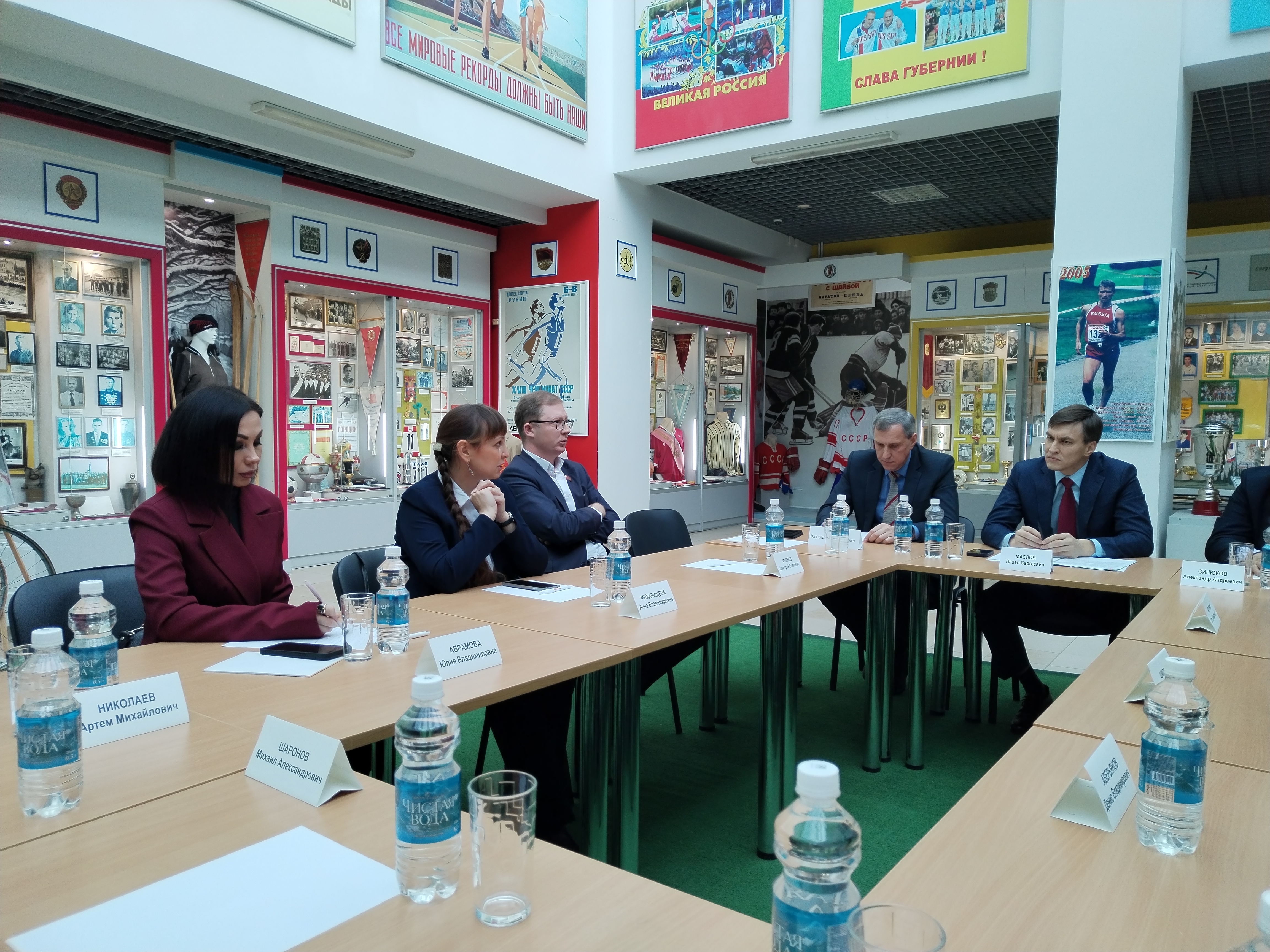 После экскурсии уже за круглым столом перед собравшимися с докладом выступил первый заместитель областного Минспорта, который рассказал о развитии физической культуры и спорта в регионе. Затем у всех участников заседания была возможность задать вопрос.