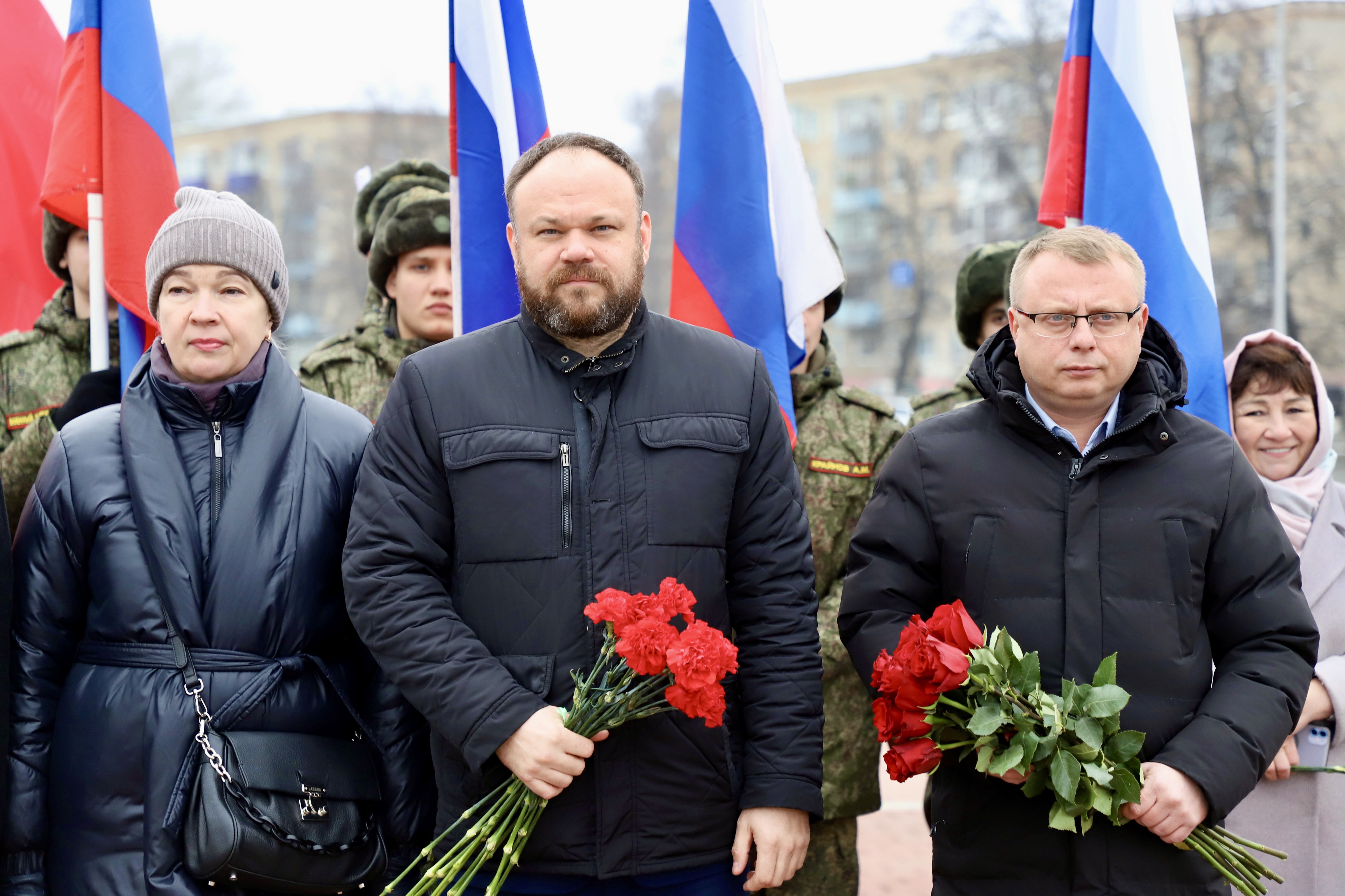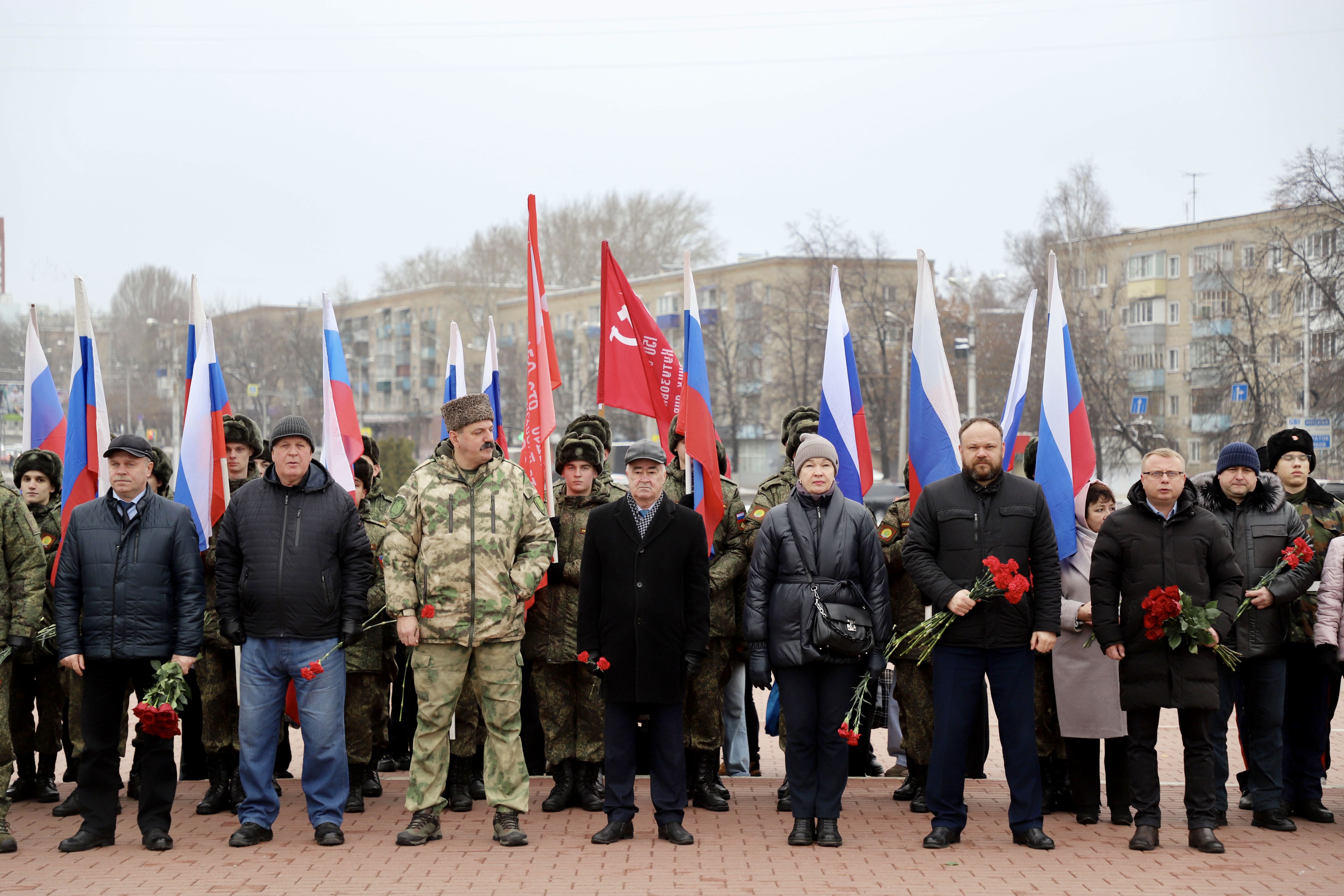 Участники мероприятия почтили память погибших защитников Отечества минутой молчания и возложили цветы к Вечному огню. Под Государственный гимн Российской Федерации прозвучал оружейный салют.