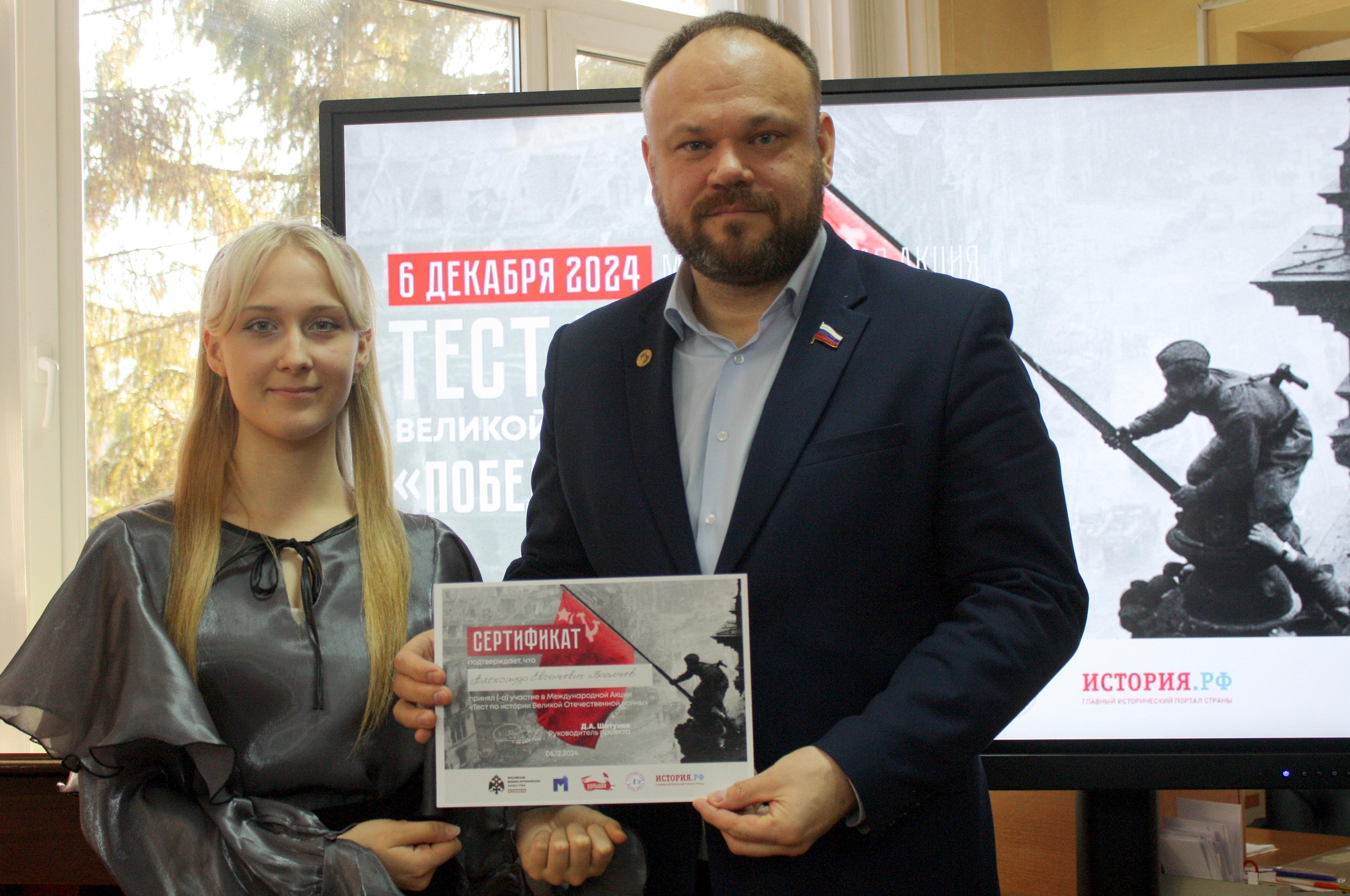 Заместитель председателя комитета Законодательного Собрания Пензенской области по бюджетной, налоговой и финансовой политике, депутат фракции ЛДПР Александр Васильев оказал содействие в проведении международной акции «Тест по истории Великой Отечественной войны» на базе Кузнецкого колледжа электронных технологий