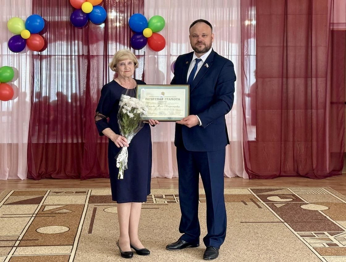 В ходе рабочего визита за многолетний добросовестный труд в системе образования региона, педагогическое мастерство и значительные успехи в деле воспитания и обучения подрастающего поколения народный избранник вручил воспитателю дошкольного образовательного учреждения Нине Храмовой Почетную грамоту регионального парламента.