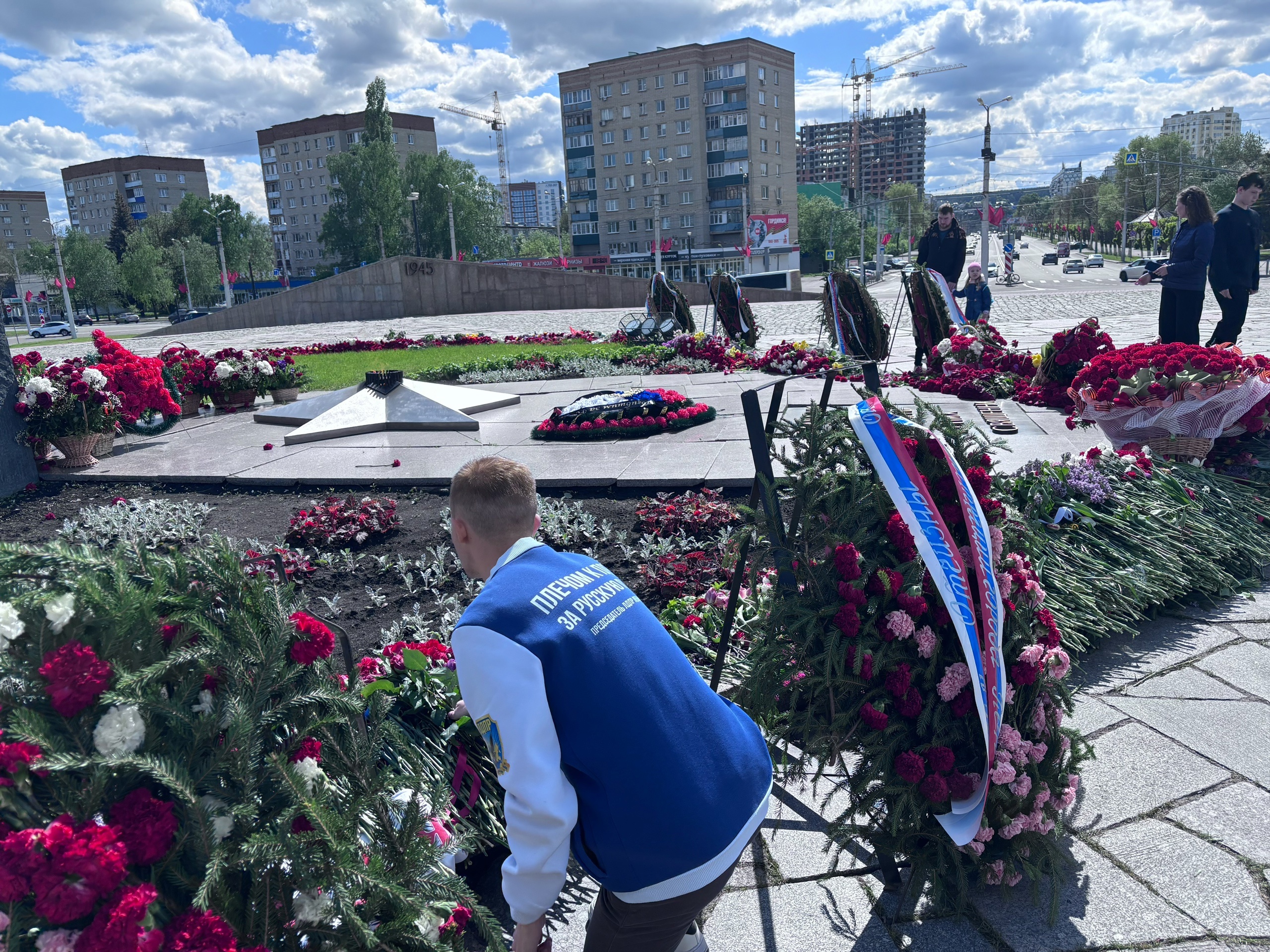 Активисты ЛДПР Даниил Тамонов и Екатерина Лютых возложили цветы к Вечному огню около Монумента воинской и трудовой славы пензенцев в память о жителях Новороссии, погибших от обстрелов со стороны Украины, в день 11-й годовщины референдумов о независимости Донецкой и Луганской народных республик, в воскресенье, 11 мая