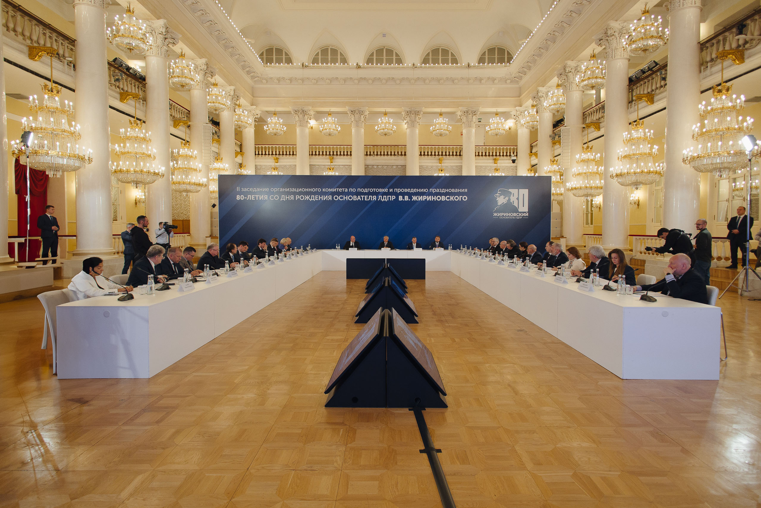 Во II заседании оргкомитета по празднованию 80-летия Владимира Жириновского приняли участие Председатель Госдумы Вячеслав Володин, вице-премьер Дмитрий Чернышенко, министр просвещения Сергей Кравцов, министр культуры Ольга Любимова, министр финансов Антон Силуанов, министр транспорта Роман Старовойт, министр науки и высшего образования Валерий Фальков, руководитель Росмолодежи Григорий Гуров, замглавы Минцифры Бэлла Черкесова, президент Российского книжного союза Сергей Степашин, а также генеральные директора российских телеканалов и информационных агентств, руководители музеев, общественных и просветительских организаций, депутаты, сенаторы, спикеры региональных парламентов.