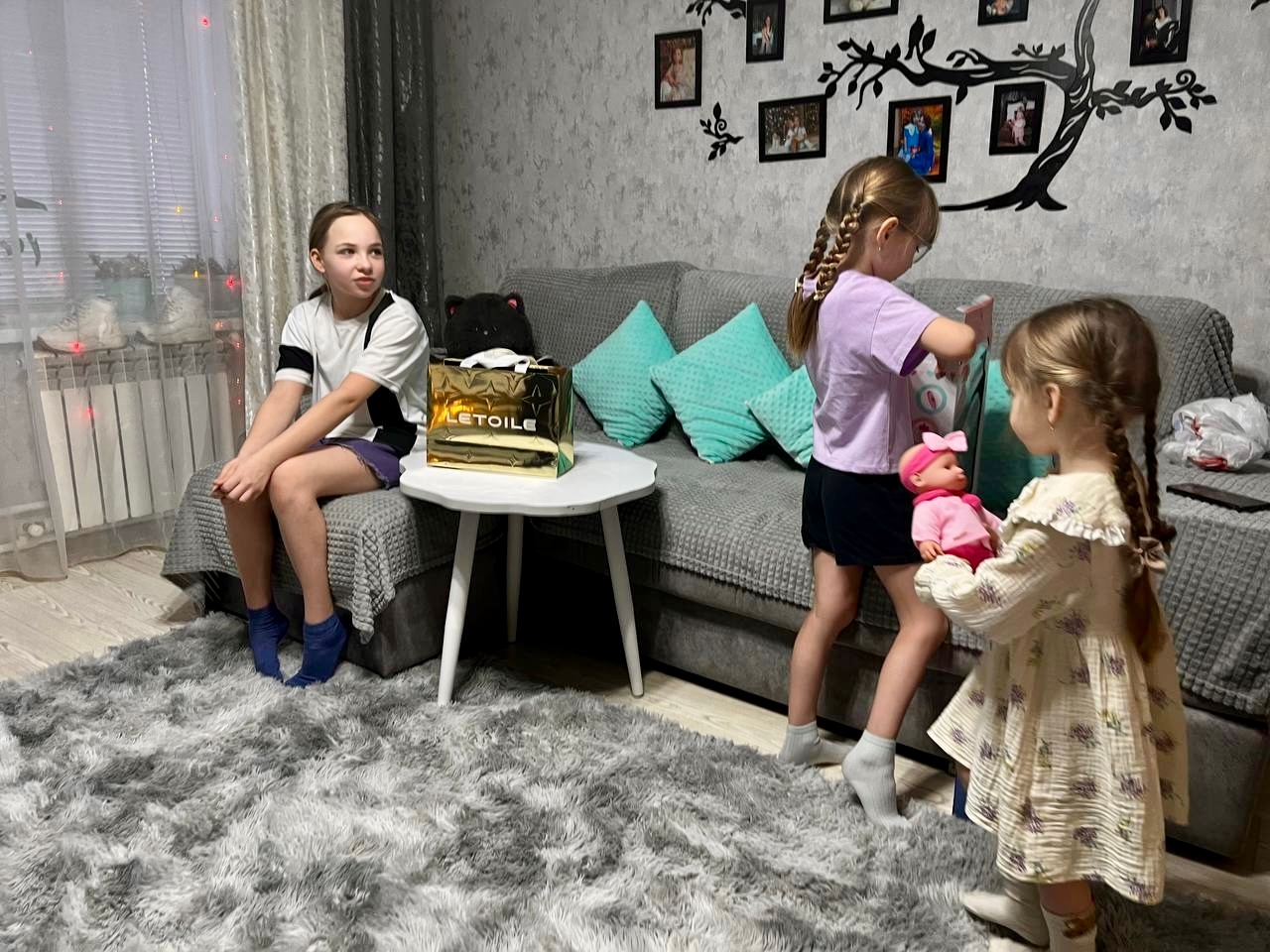 Валерия, Виктория и Варвара искренне обрадовались визиту парламентария. Самая юная Варя рассказала стихотворение, а Валерия и Виктория поделились историями о своих успехах в школе и увлечениях — музыке и рисовании.