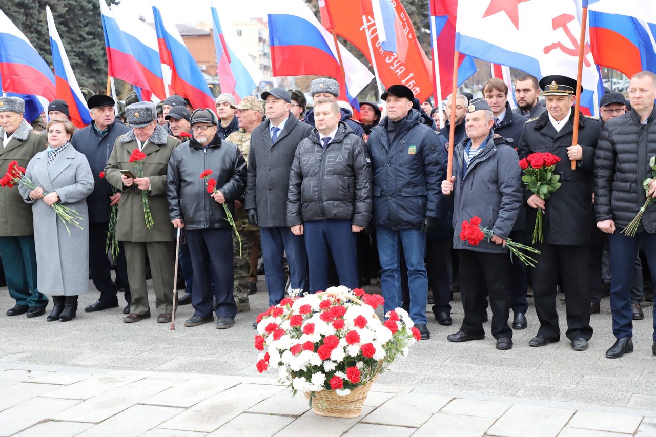 Собравшиеся почтили память Героев минутой молчания, после чего прозвучал Гимн Российской Федерации, и участники церемонии возложили цветы к стеле.