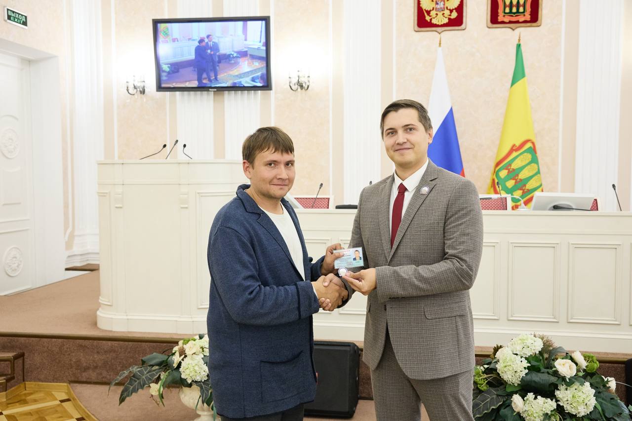Координатору Первомайского первичного отделения города Пензы Алексею Молебнову было торжественно вручено удостоверение депутата Молодежного парламента.
