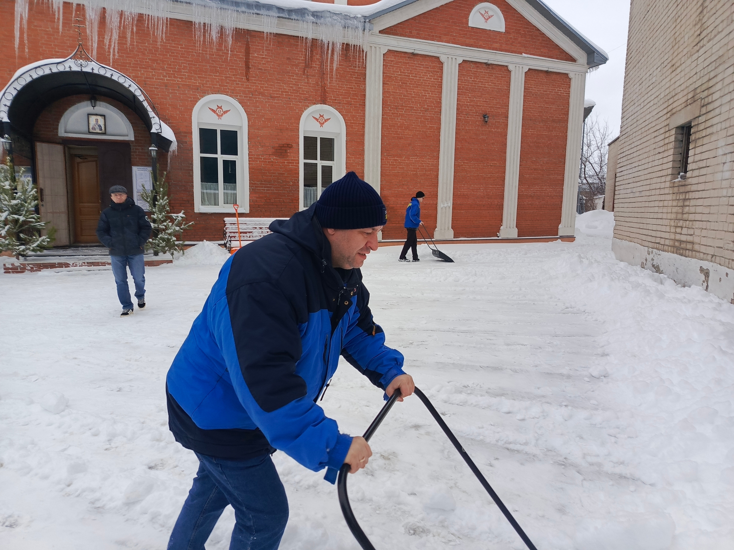 Несмотря на морозную погоду, молодые люди с энтузиазмом взялись за работу. За несколько часов они очистили дорожки и подходы к храму, обеспечив безопасный и удобный проход для прихожан, среди которых много пожилых людей.