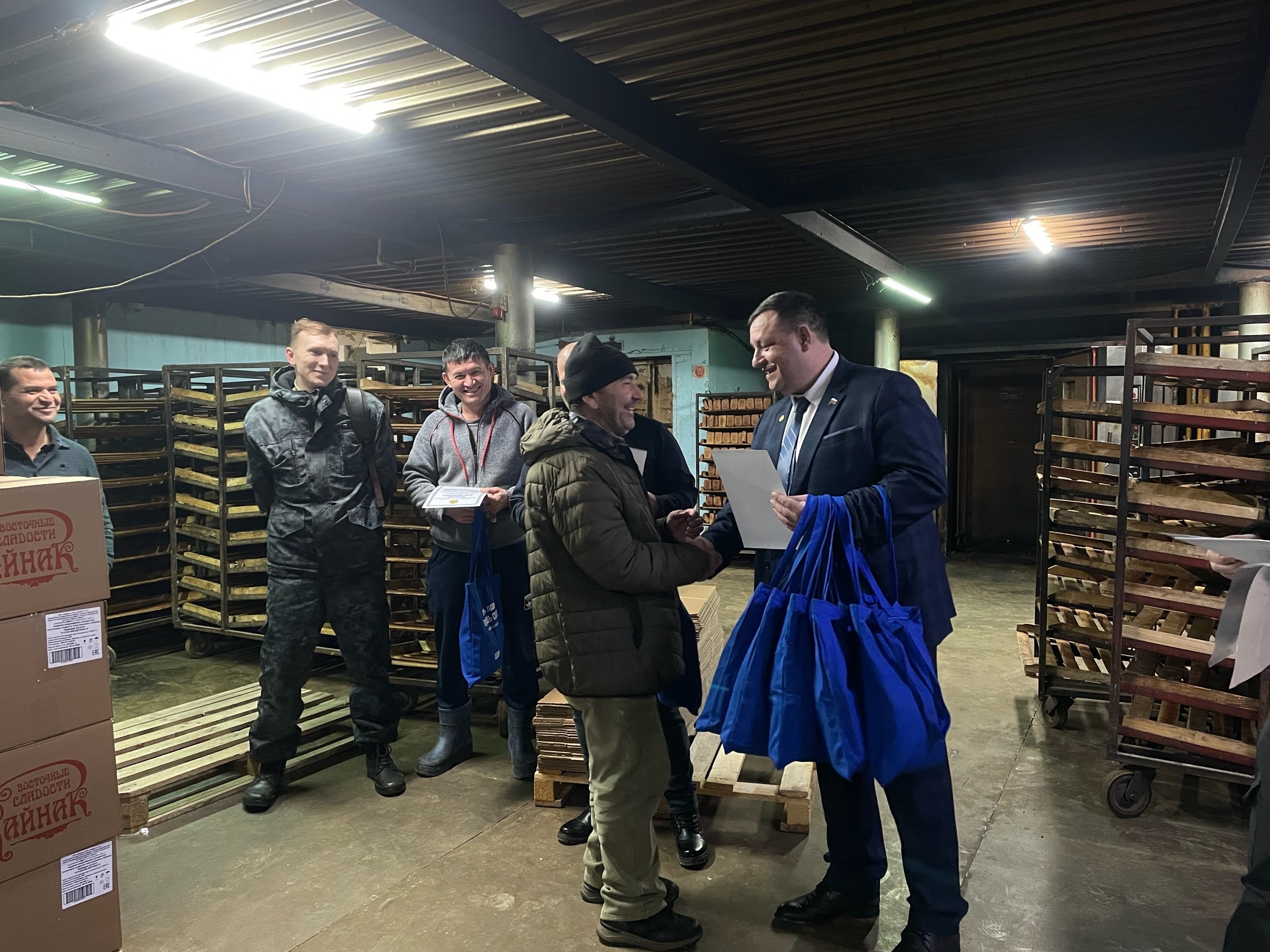В ходе визита парламентарий не только лично поздравил мужчин, но и вручил сотрудникам предприятия памятные подарки от ЛДПР.