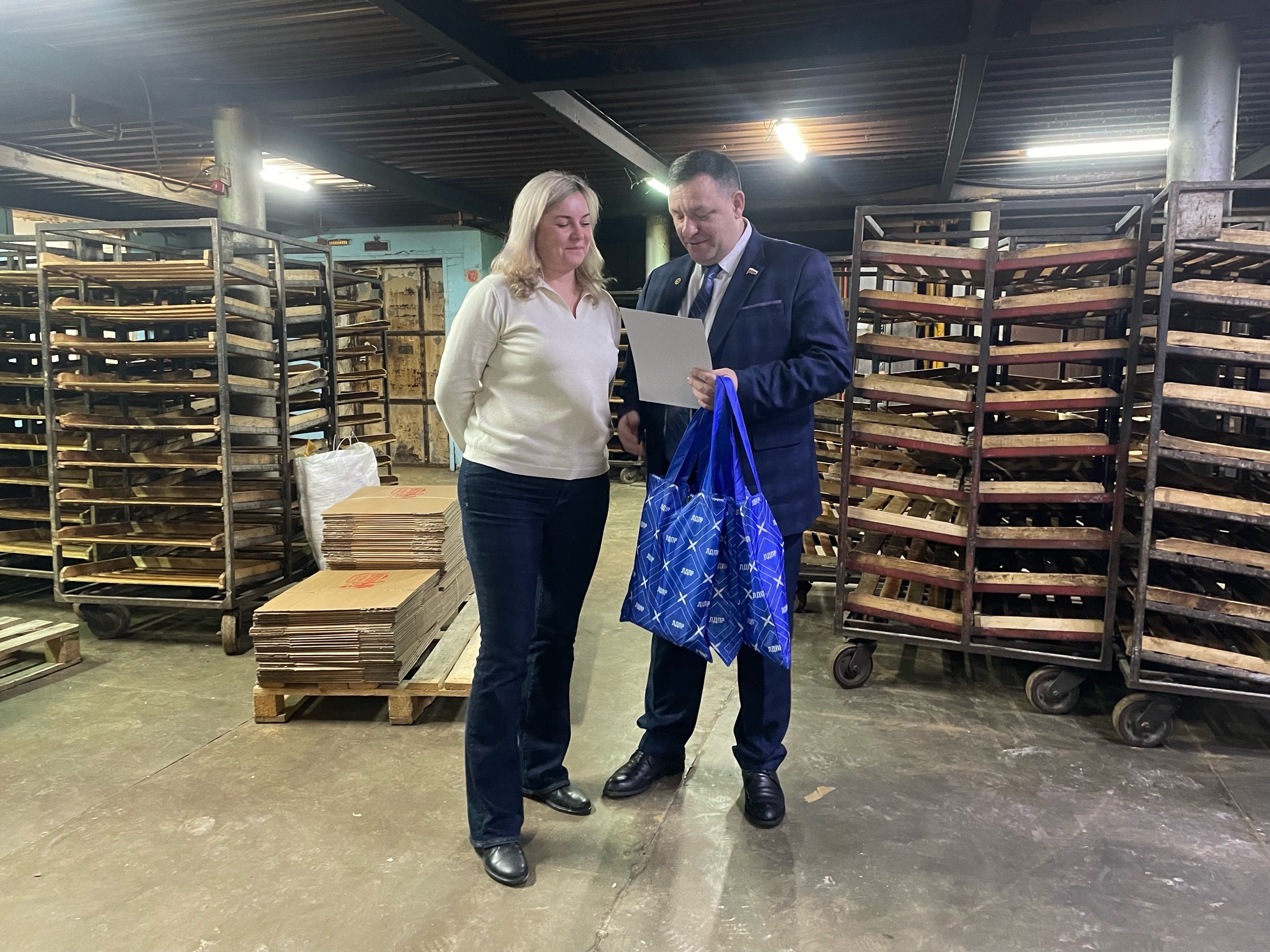 В ходе визита парламентарий лично поздравил женщин и вручил сотрудницам предприятия памятные подарки от ЛДПР.